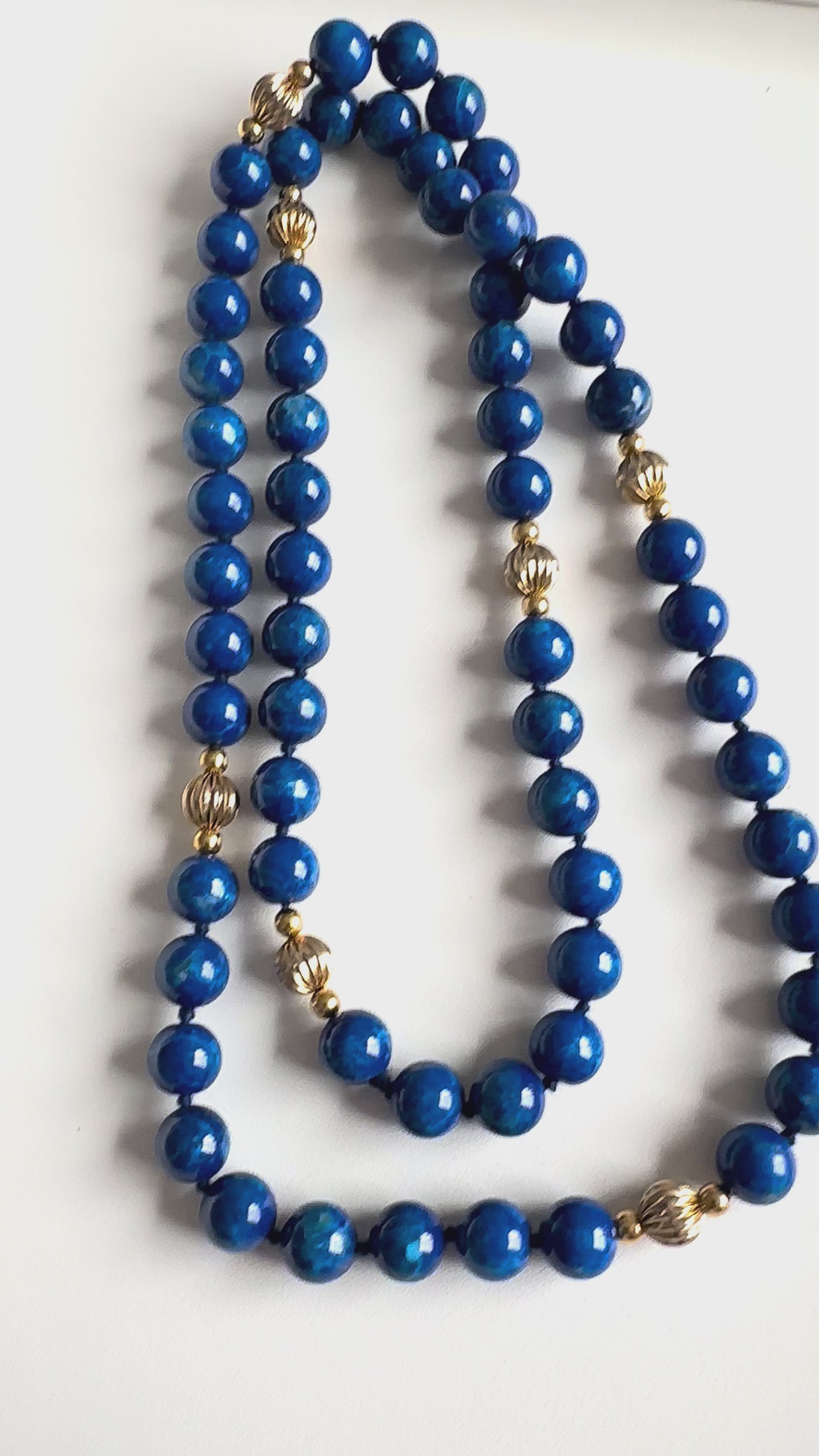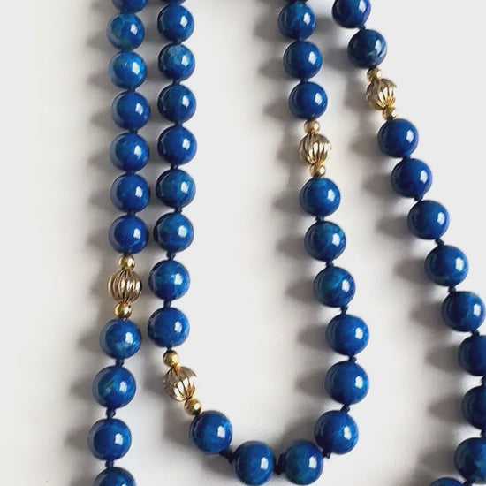 Vintage Lapis Lazuli 14K Gold Long Necklace 31” Length